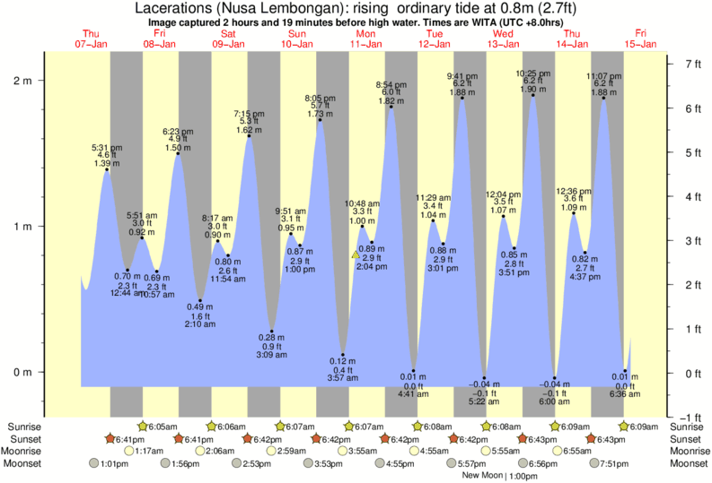Forecast wind and swell just offshore from Lacerations (Nusa Lembongan) around the time the photo was taken