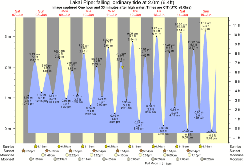 Forecast wind and swell just offshore from Lakey Pipe around the time the photo was taken