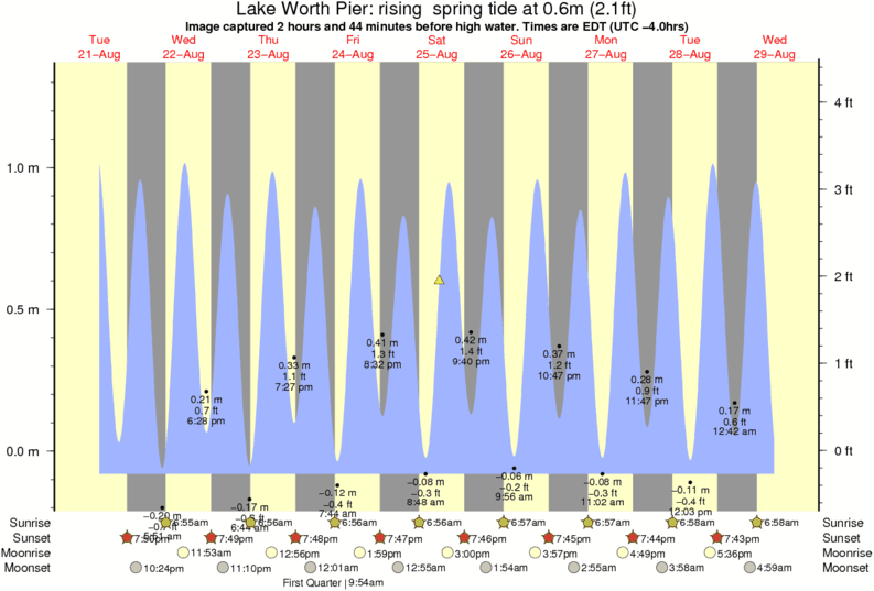 Forecast wind and swell just offshore from Lake Worth Pier around the time the photo was taken