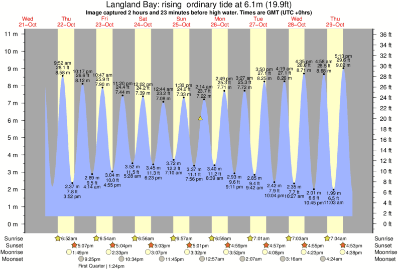 Image captured 2 hours and 23 minutes before high water (rising ordinary tide). Tide height was 6.1m (19.9 ft). Range 9.87m (32.4 ft). Toggle tide graph