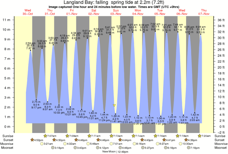 Image captured One hour and 24 minutes before low water (falling spring tide). Tide height was 2.2m (7.2 ft). Range 10.04m (32.9 ft). Toggle tide graph