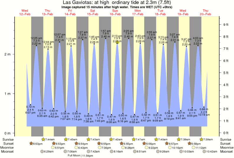 Image captured 15 minutes after high water (at high ordinary tide). Tide height was 2.3m (7.5 ft). Range 2.53m (8.3 ft). Toggle tide graph