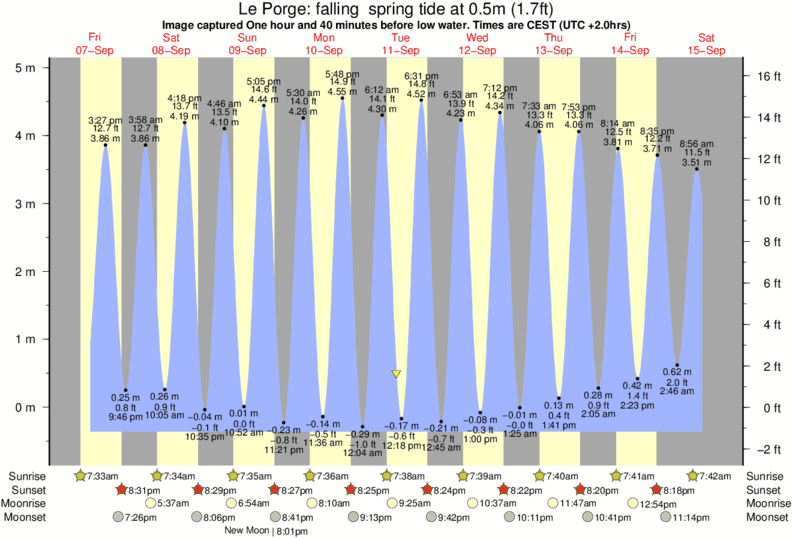 Image captured One hour and 40 minutes before low water (falling spring tide). Tide height was 0.5m (1.7 ft). Range 5.01m (16.4 ft). Toggle tide graph