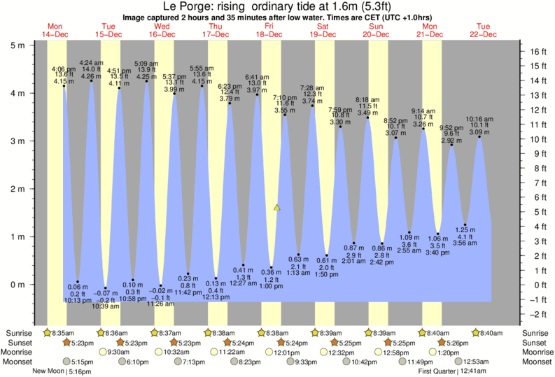 Image captured 2 hours and 35 minutes after low water (rising ordinary tide). Tide height was 1.6m (5.3 ft). Range 4.97m (16.3 ft). Toggle tide graph