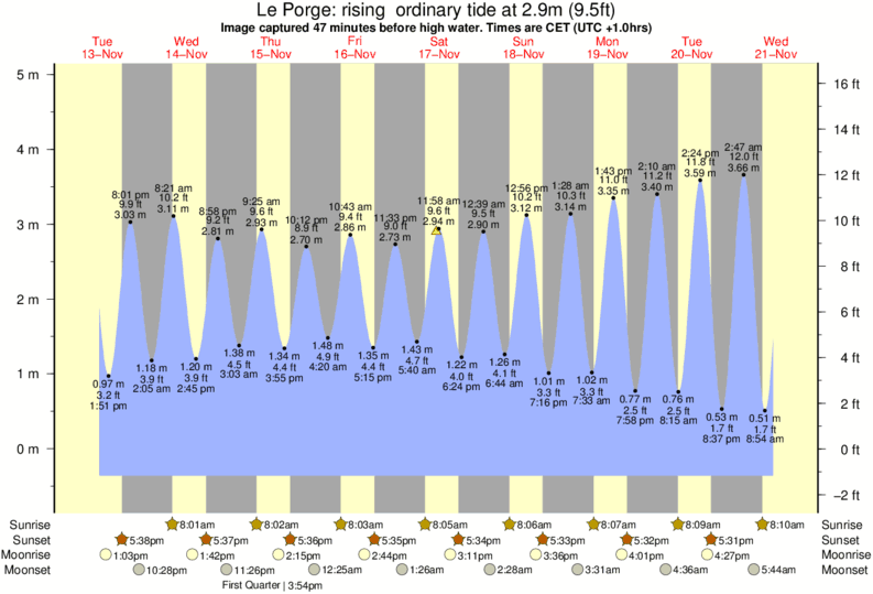 Image captured 47 minutes before high water (rising ordinary tide). Tide height was 2.9m (9.5 ft). Range 5.01m (16.4 ft). Toggle tide graph