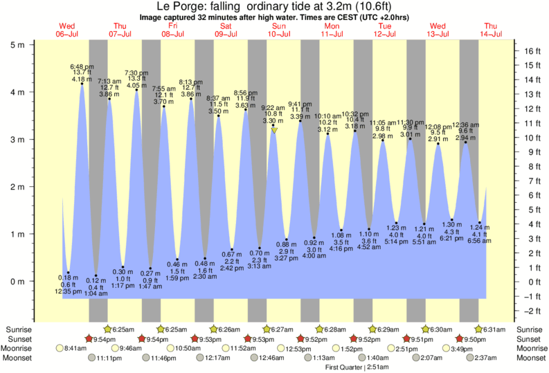 Image captured 32 minutes after high water (falling ordinary tide). Tide height was 3.2m (10.6 ft). Range 4.98m (16.3 ft). Toggle tide graph