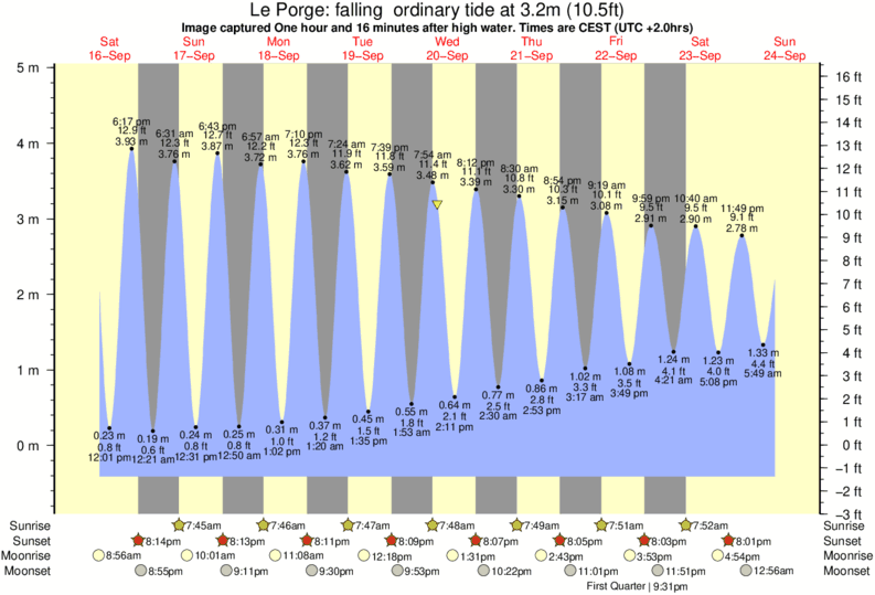 Image captured One hour and 16 minutes after high water (falling ordinary tide). Tide height was 3.2m (10.5 ft). Range 4.97m (16.3 ft). Toggle tide graph