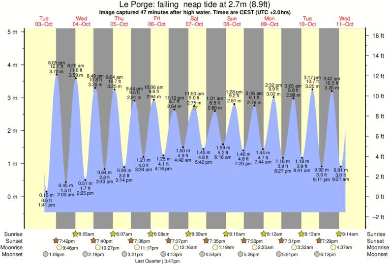 Image captured 47 minutes after high water (falling neap tide). Tide height was 2.7m (8.9 ft). Range 5.07m (16.6 ft). Toggle tide graph