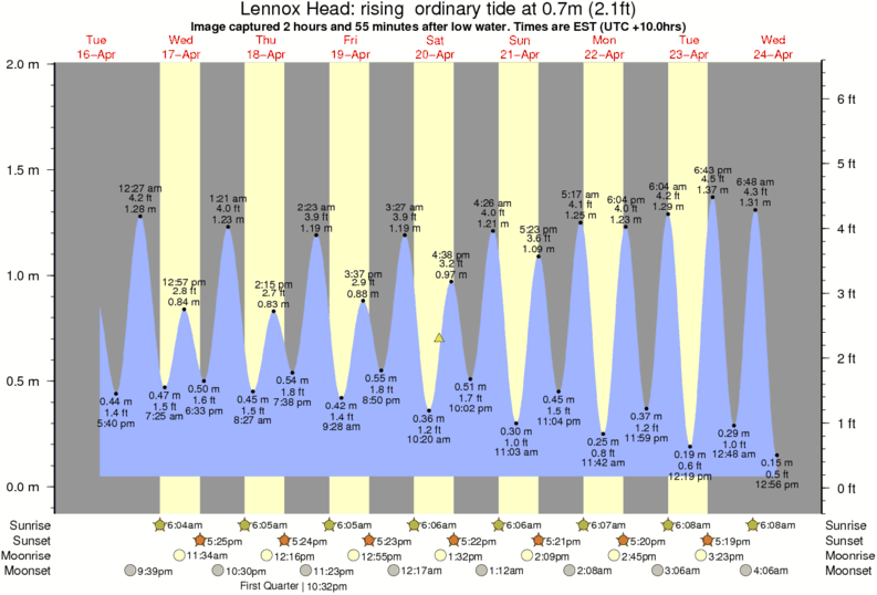 Image captured 2 hours and 55 minutes after low water (rising ordinary tide). Tide height was 0.7m (2.1 ft). Range 1.78m (5.8 ft). Toggle tide graph