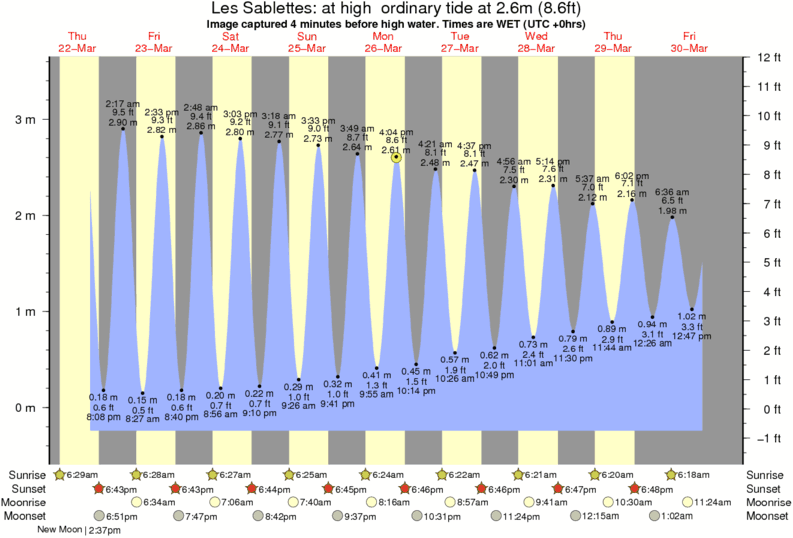 Image captured 4 minutes before high water (at high ordinary tide). Tide height was 2.6m (8.6 ft). Range 3.54m (11.6 ft). Toggle tide graph