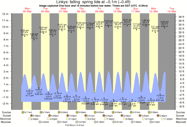 Image captured One hour and 14 minutes before low water (falling spring tide). Tide height was -0.1m (-0.4 ft). Range 12.58m (41.3 ft). Toggle tide graph
