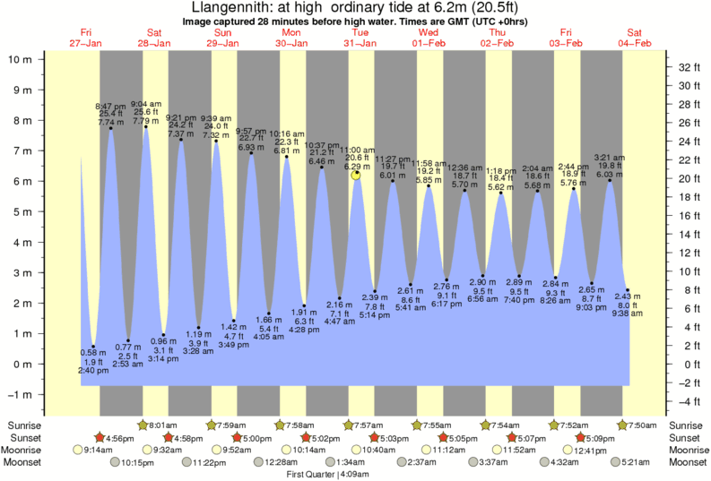 Image captured 28 minutes before high water (at high ordinary tide). Tide height was 6.2m (20.5 ft). Range 10.00m (32.8 ft). Toggle tide graph