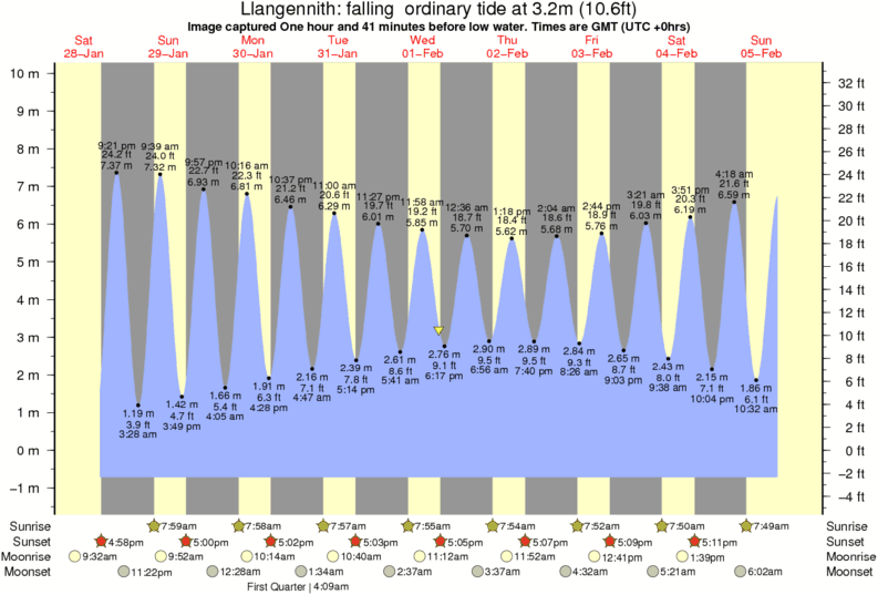 Image captured One hour and 41 minutes before low water (falling ordinary tide). Tide height was 3.2m (10.6 ft). Range 10.00m (32.8 ft). Toggle tide graph