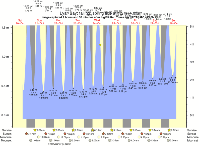 Image captured 2 hours and 33 minutes after high water (falling spring tide). Tide height was 1.2m (4.0 ft). Range 1.46m (4.8 ft). Toggle tide graph