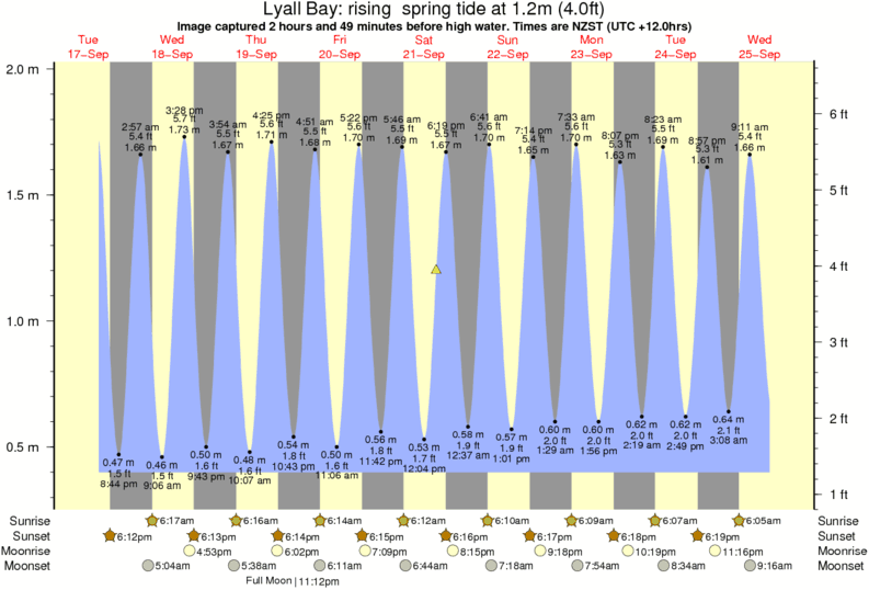 Image captured 2 hours and 49 minutes before high water (rising spring tide). Tide height was 1.2m (4.0 ft). Range 1.48m (4.9 ft). Toggle tide graph