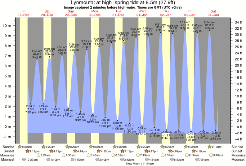 Forecast wind and swell just offshore from Lynmouth around the time the photo was taken