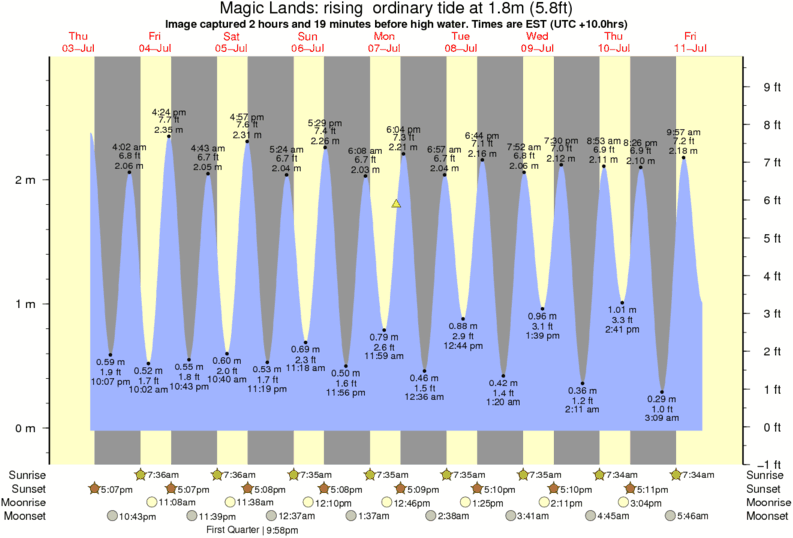 Image captured 2 hours and 19 minutes before high water (rising ordinary tide). Tide height was 1.8m (5.8 ft). Range 2.74m (9.0 ft). Toggle tide graph