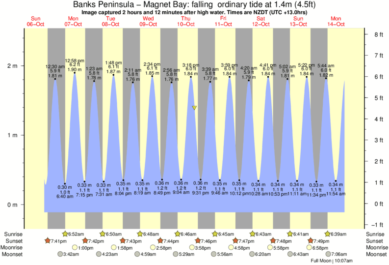 Image captured 2 hours and 12 minutes after high water (falling ordinary tide). Tide height was 1.4m (4.5 ft). Range 2.41m (7.9 ft). Toggle tide graph