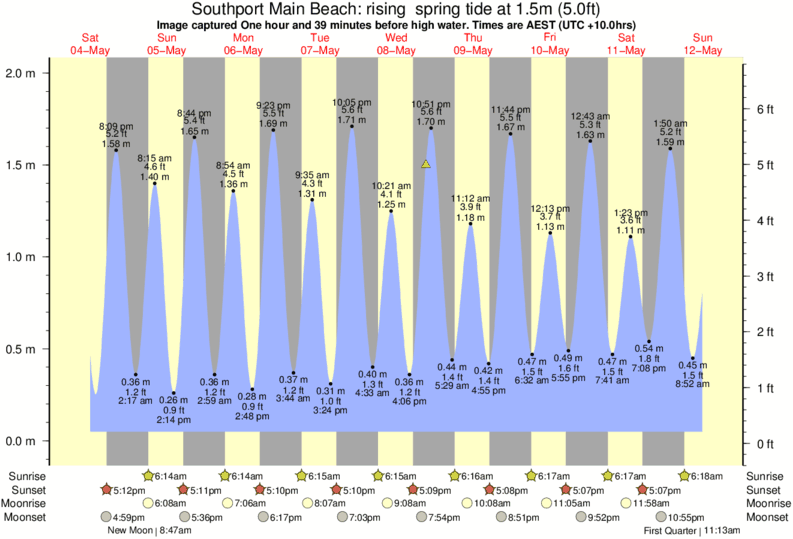 Forecast wind and swell just offshore from Southport Main Beach around the time the photo was taken