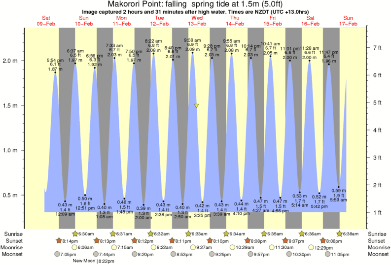 Forecast wind and swell just offshore from Makorori Point around the time the photo was taken