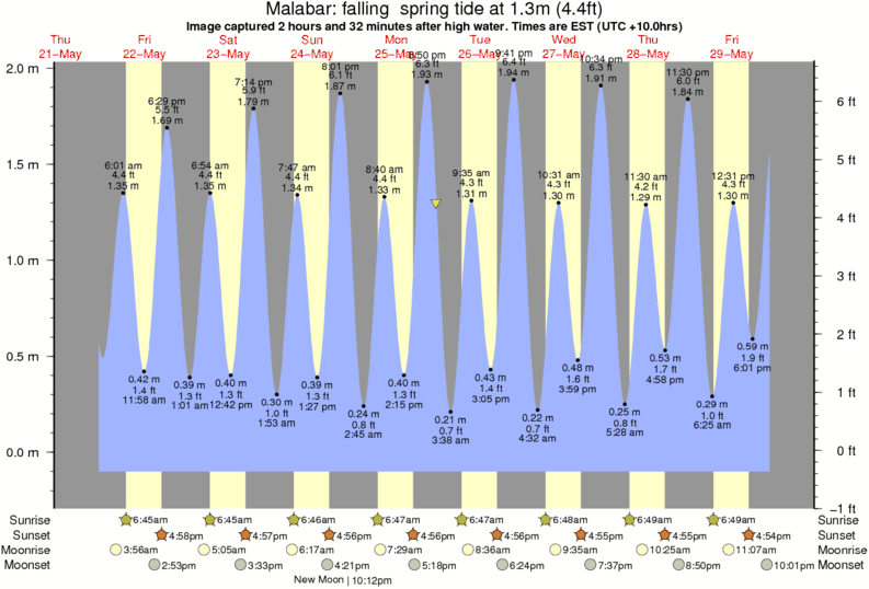 Image captured 2 hours and 32 minutes after high water (falling spring tide). Tide height was 1.3m (4.4 ft). Range 1.94m (6.4 ft). Toggle tide graph