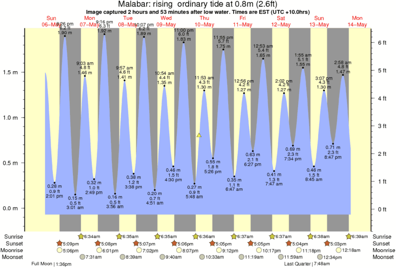 Image captured 2 hours and 53 minutes after low water (rising ordinary tide). Tide height was 0.8m (2.6 ft). Range 1.87m (6.1 ft). Toggle tide graph