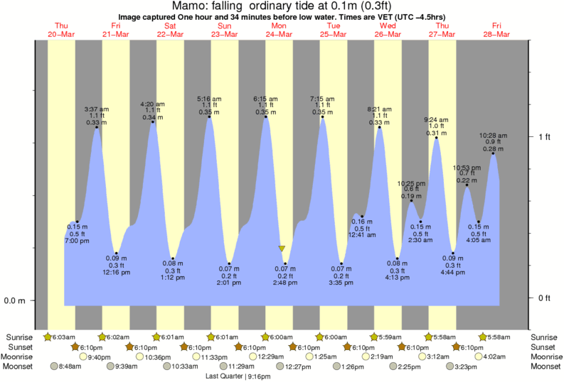 Image captured One hour and 34 minutes before low water (falling ordinary tide). Tide height was 0.1m (0.3 ft). Range 0.46m (1.5 ft). Toggle tide graph