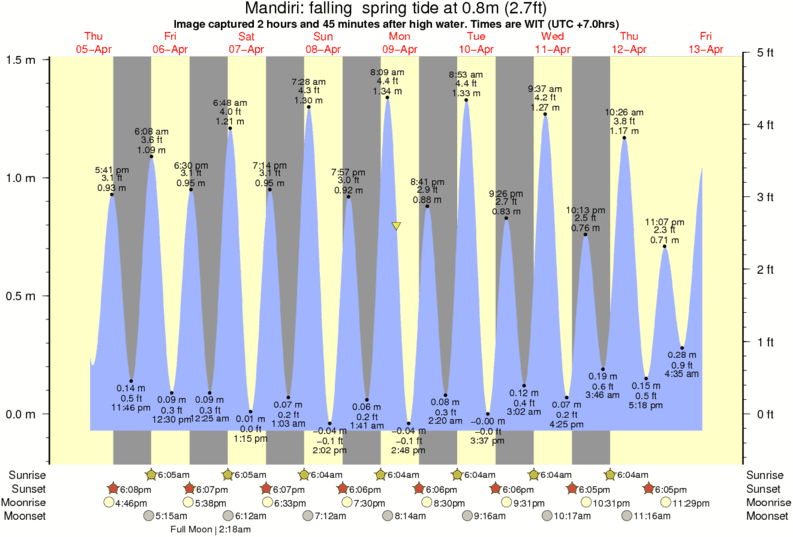 Image captured 2 hours and 45 minutes after high water (falling spring tide). Tide height was 0.8m (2.7 ft). Range 1.44m (4.7 ft). Toggle tide graph