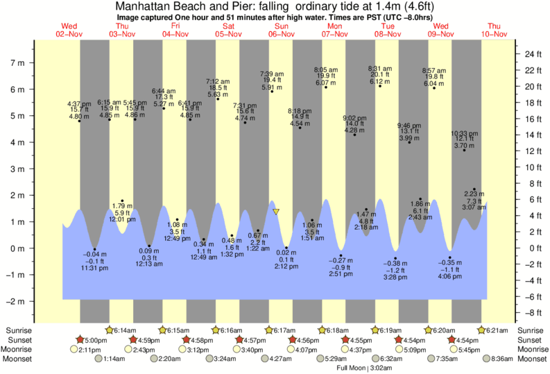 Forecast wind and swell just offshore from Manhattan Beach and Pier around the time the photo was taken