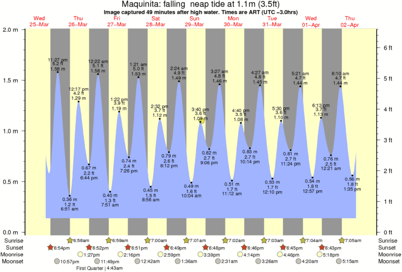 Image captured 49 minutes after high water (falling neap tide). Tide height was 1.1m (3.5 ft). Range 1.70m (5.6 ft). Toggle tide graph