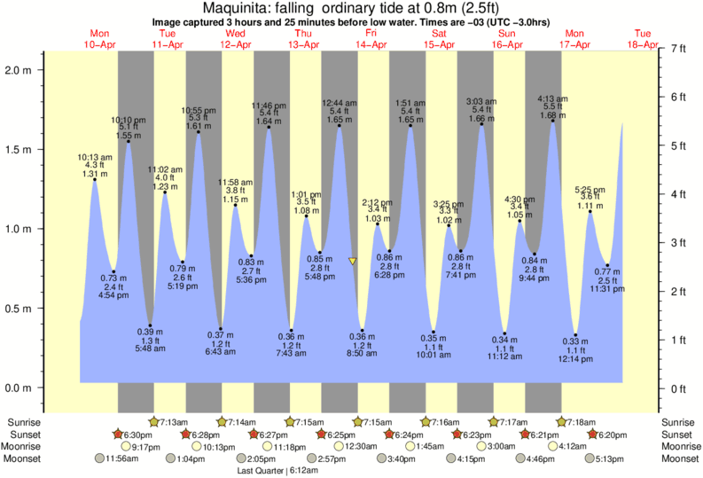 Image captured 3 hours and 25 minutes before low water (falling ordinary tide). Tide height was 0.8m (2.5 ft). Range 1.90m (6.2 ft). Toggle tide graph