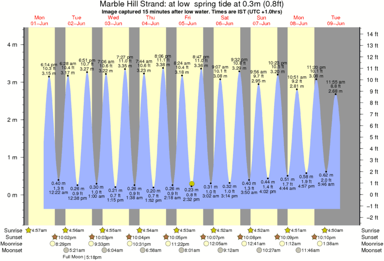 Image captured 15 minutes after low water (at low spring tide). Tide height was 0.3m (0.8 ft). Range 4.39m (14.4 ft). Toggle tide graph