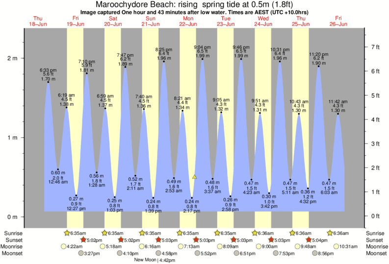 Image captured One hour and 43 minutes after low water (rising spring tide). Tide height was 0.5m (1.8 ft). Range 2.10m (6.9 ft). Toggle tide graph