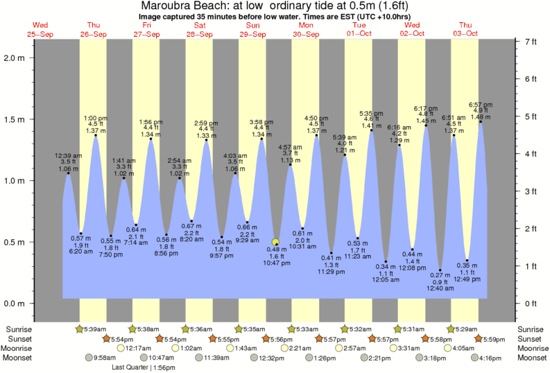 Image captured 35 minutes before low water (at low ordinary tide). Tide height was 0.5m (1.6 ft). Range 1.92m (6.3 ft). Toggle tide graph