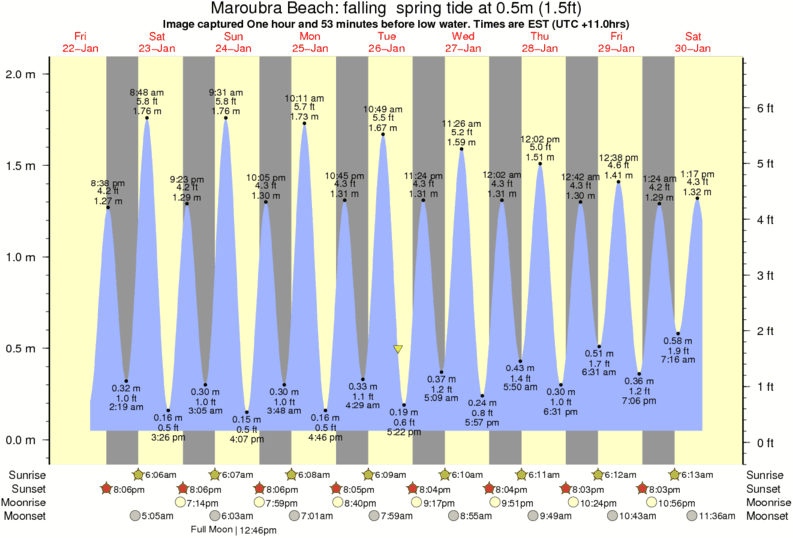 Forecast wind and swell just offshore from Maroubra Beach around the time the photo was taken