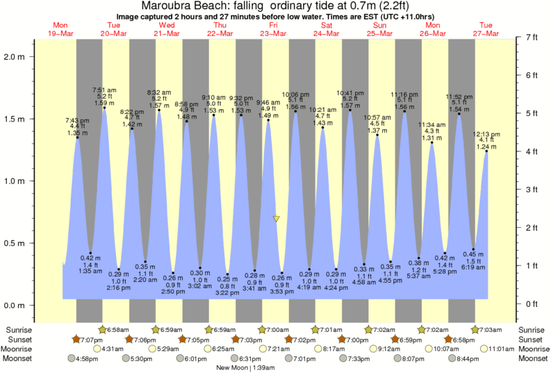 Forecast wind and swell just offshore from Maroubra Beach around the time the photo was taken