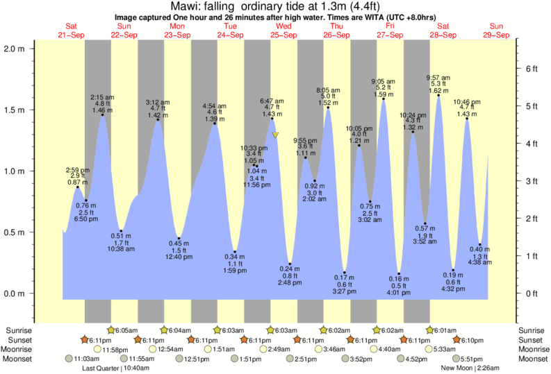 Image captured One hour and 26 minutes after high water (falling ordinary tide). Tide height was 1.3m (4.4 ft). Range 1.93m (6.3 ft). Toggle tide graph