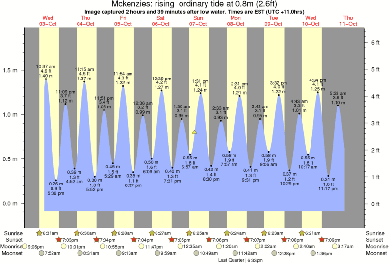 Image captured 2 hours and 39 minutes after low water (rising ordinary tide). Tide height was 0.8m (2.6 ft). Range 1.88m (6.2 ft). Toggle tide graph