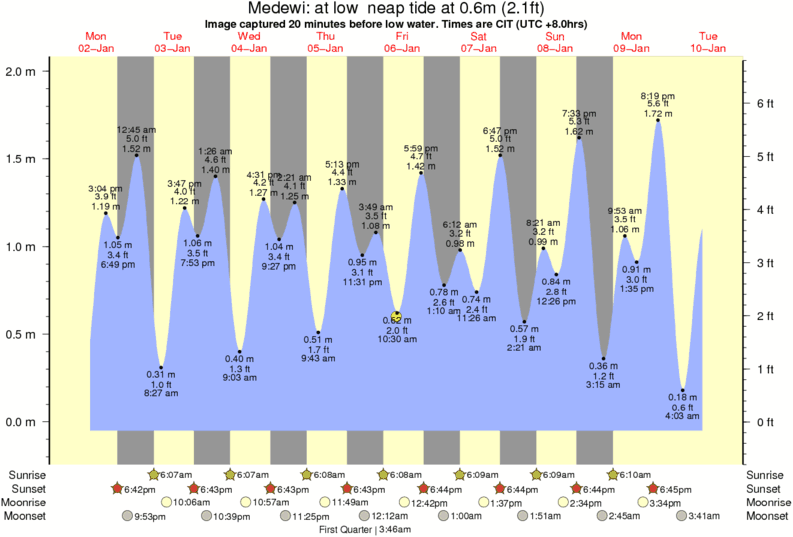 Image captured 20 minutes before low water (at low neap tide). Tide height was 0.6m (2.1 ft). Range 1.94m (6.4 ft). Toggle tide graph
