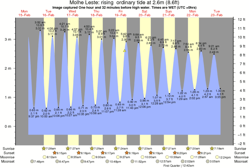 Image captured One hour and 32 minutes before high water (rising ordinary tide). Tide height was 2.6m (8.6 ft). Range 3.67m (12.0 ft). Toggle tide graph