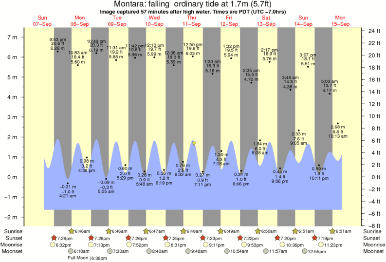 Image captured 57 minutes after high water (falling ordinary tide). Tide height was 1.7m (5.7 ft). Range 8.28m (27.2 ft). Toggle tide graph