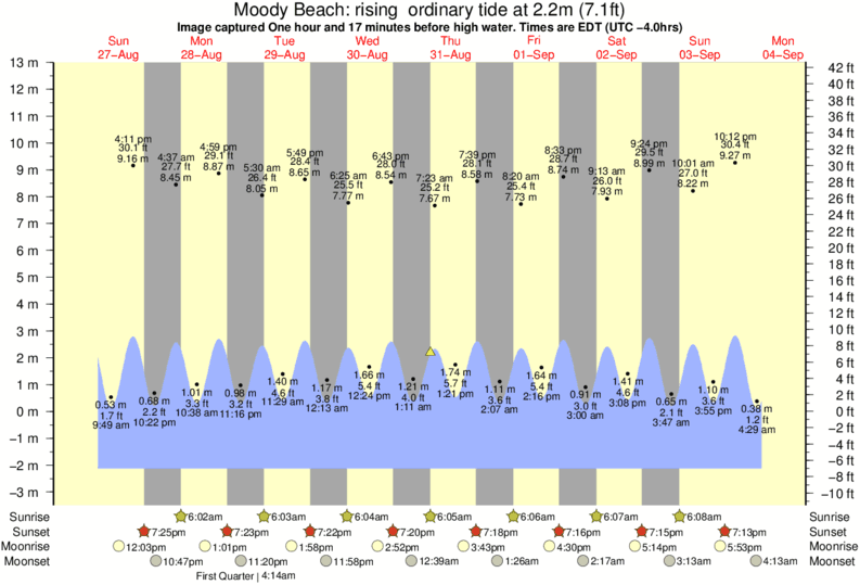 Forecast wind and swell just offshore from Moody Beach around the time the photo was taken