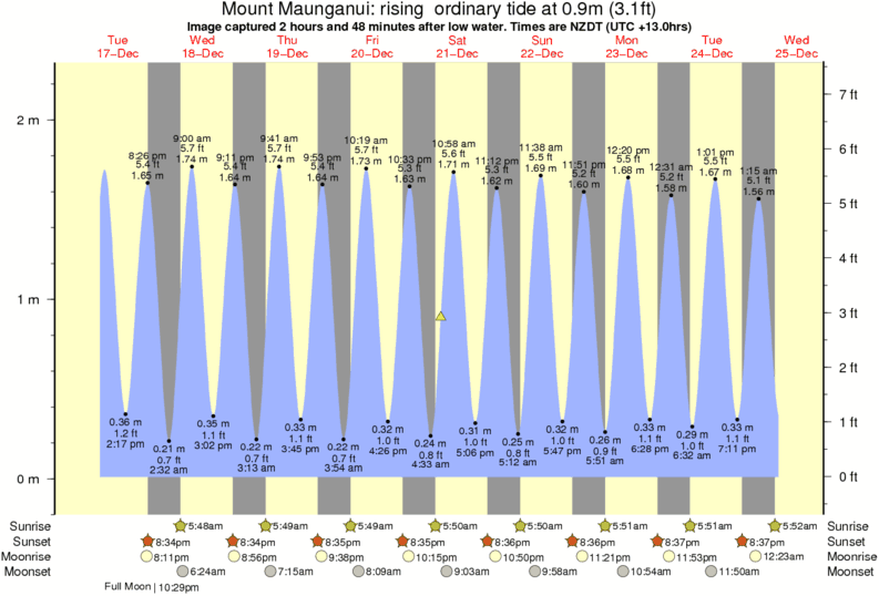 Forecast wind and swell just offshore from Mount Maunganui around the time the photo was taken