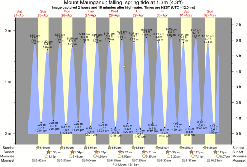 Forecast wind and swell just offshore from Mount Maunganui around the time the photo was taken