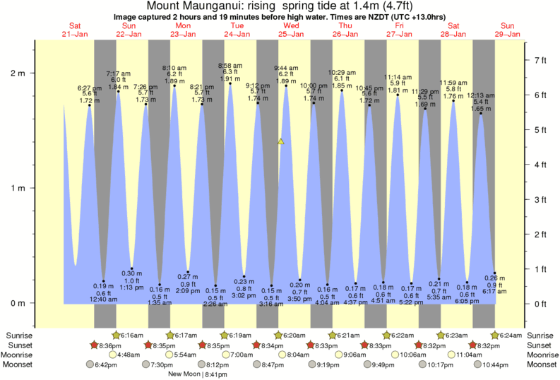 Forecast wind and swell just offshore from Mount Maunganui around the time the photo was taken