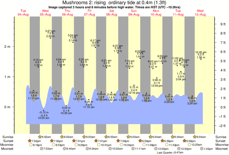 Image captured 3 hours and 6 minutes before high water (rising ordinary tide). Tide height was 0.4m (1.3 ft). Range 3.24m (10.6 ft). Toggle tide graph