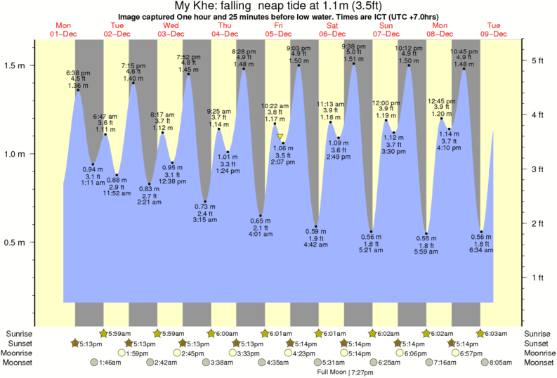 Image captured One hour and 25 minutes before low water (falling neap tide). Tide height was 1.1m (3.5 ft). Range 1.35m (4.4 ft). Toggle tide graph