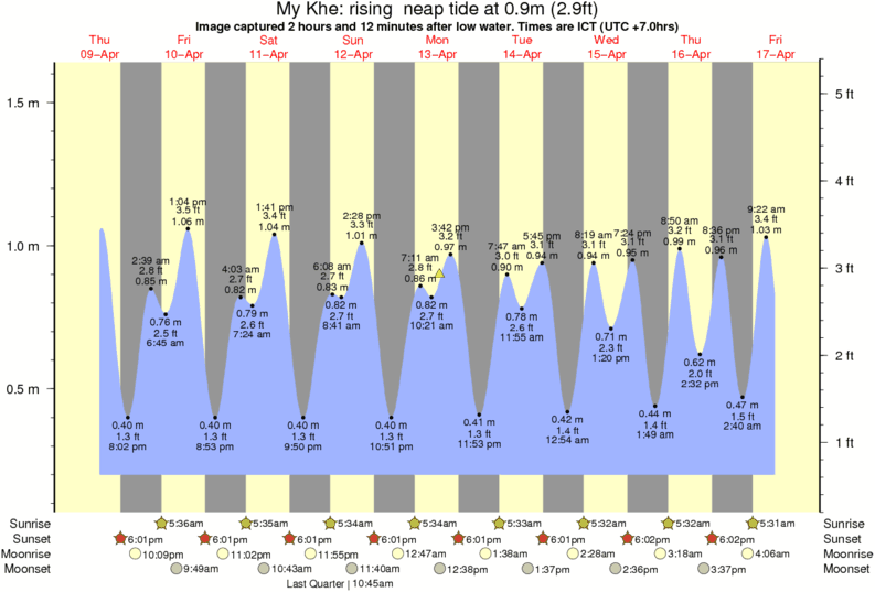 Image captured 2 hours and 12 minutes after low water (rising neap tide). Tide height was 0.9m (2.9 ft). Range 1.31m (4.3 ft). Toggle tide graph