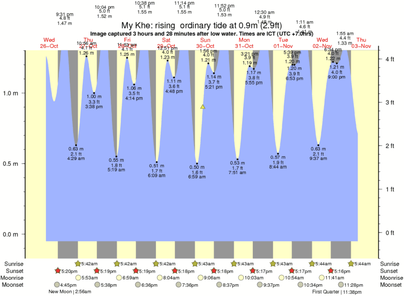 Image captured 3 hours and 28 minutes after low water (rising ordinary tide). Tide height was 0.9m (2.9 ft). Range 1.23m (4.0 ft). Toggle tide graph