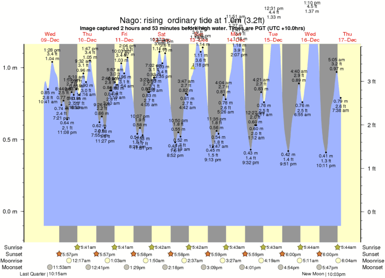 Forecast wind and swell just offshore from Nago around the time the photo was taken